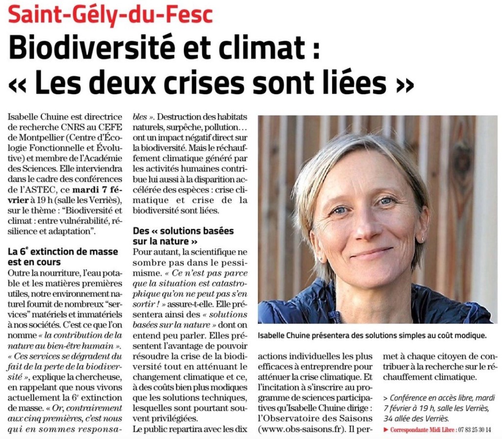 Conférence d’Isabelle CHUINE, Directrice de recherche CNRS au CEFE, membre de l’Académie des Sciences et de l’Académie d’Agriculture de France