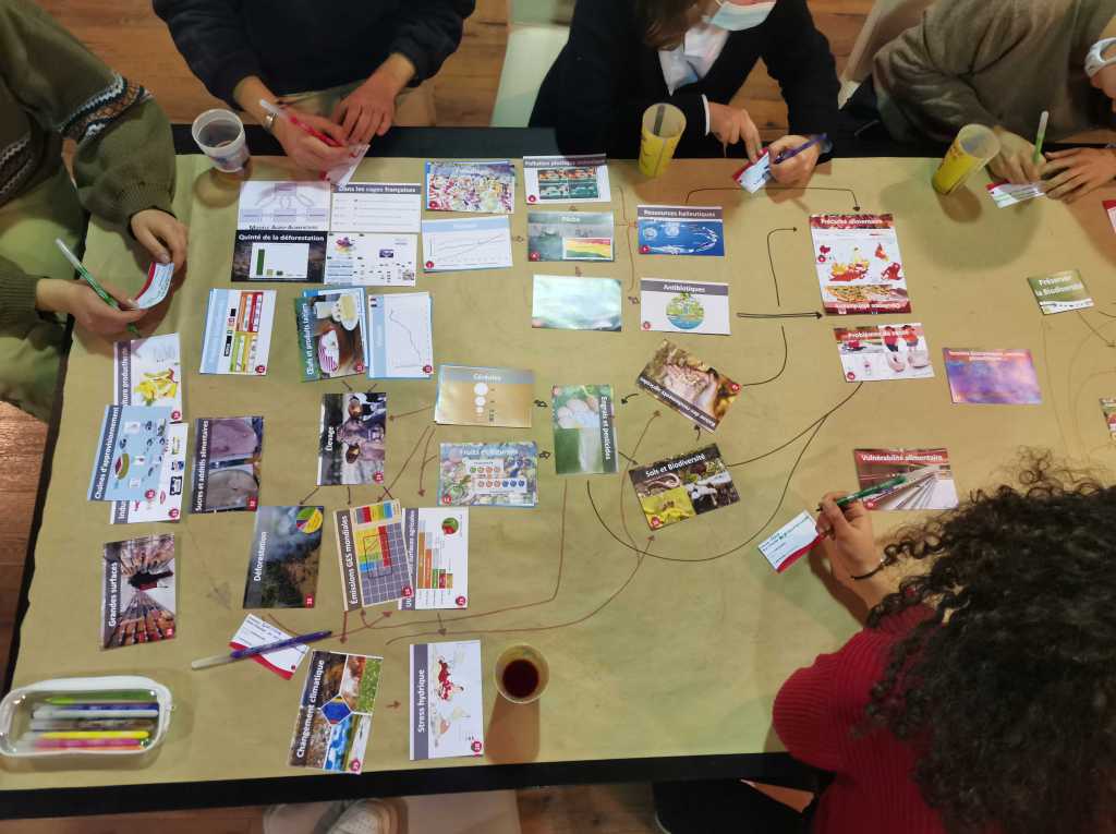 2. Réflexion (1h15) : étude des causes et conséquences de nos consommations (poisson, céréales, viandes, produits transformés, …) sur le climat, la biodiversité, la santé et la résilience alimentaire.