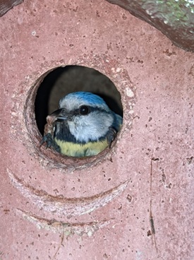 En haut à gauche, verticalement : Chapim-azul (Cyanistes caeruleus) Humberto Matos ; Chapim-azul (Cyanistes caeruleus) José Freitas ; Mésange Bleue (Luisa Sequeira 1). En haut à droite : Mésange Bleue (Luisa Sequeira 2). Au centre, de gauche à droite : Mésange Bleue au trou avec chenille (Paula Dias) ; Mésange BLeue copeaux 2 (Luisa Sequeira). En bas à gauche : Mésange Bleue juvénile au trou nichoir 79. En bas à droite, verticalement : Mésange Charbonnière au nid ; Poussins @main 1-2-3-4 jours ; Poussins famille @main.